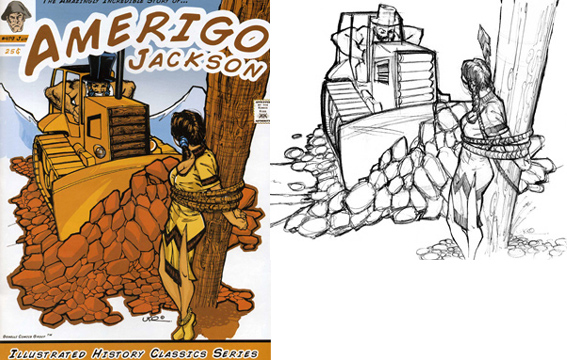 September 27, 2006 It's been a while since my last post and thought time to catch up here. Well, for one I finally finished the Avengers sketchcards that are due out in November. My final total for these was 356 cards. Eventually after they're released in the stores I will start posting them here a few at a time for those who are interested in checking them out if they're collectors and likes what they see. Now it's back to catching up with work I've had to put aside for a little bit and look towards future projects that are planned in the near future. Also, here is the latest production art piece of mine to see print in a magazine called "ODDFELLOW" with issue #3. It is a cover to a story titled Amerigo Jackson. It's a good read along with the other stories contained in the magazine. So hopefully you'll be able to check out a copy yourself. Here is the cover piece along with a more finished preliminary sketch